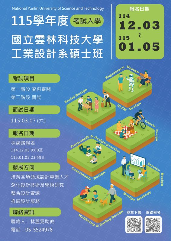 ~雲科大工設系碩士班 115 招生開跑!誠摯邀請您加入~